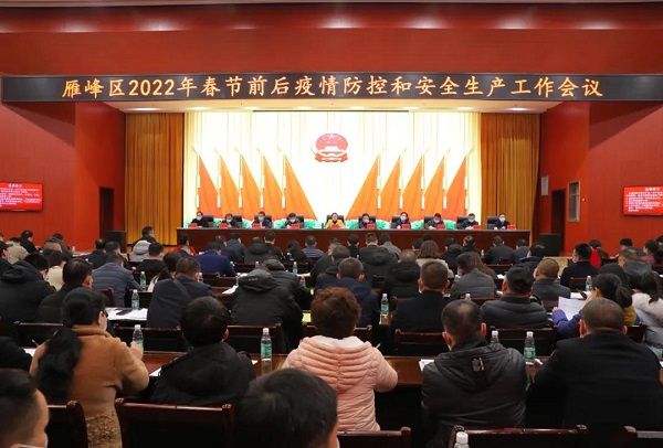1月3日上午,雁峰区召开2022年春节前后疫情防控和安全生产工作会议,迅速贯彻落实近期省、市疫情防控和安全生产工作相关会议精神,动员全区上下以最高的站位充分认识形势的复杂性、时段的特殊性和工作的严肃性,把守底线、保平安的各项工作抓得更加扎实、更加严密,为雁峰在新的一年开好局、起好步创造良好、稳定的发展环境,为全区百姓营造一个安宁祥和平安的节日氛围。区委书记王燕出席并讲话。区委副书记、区长谢韬主持会议。区委副书记、统战部长李世钧,区政协主席尹熙明参加。