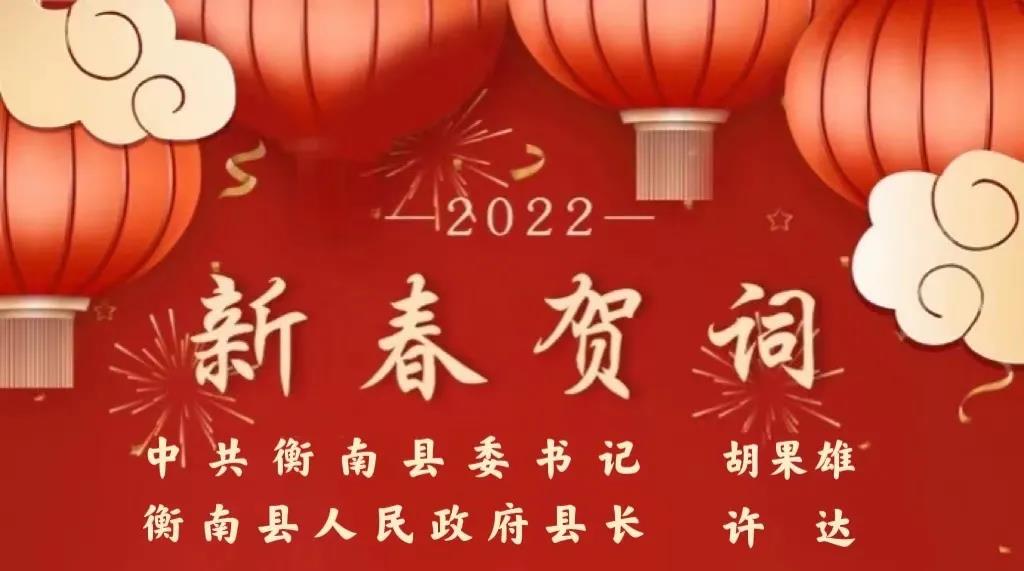 勤牛踏雪绘盛景,瑞虎迎春谱新篇。值此新春佳节来临之际,我们谨代表中共衡南县委、衡南县人民政府,向全县人民、驻县部队、武警官兵和在衡南投资兴业、工作生活的客商们、朋友们致以新春的美好祝福!向各行各业、各条战线坚守岗位的同志们致以节日的亲切慰问!向所有关心、支持和参与衡南经济社会发展的各界人士致以衷心的感谢!