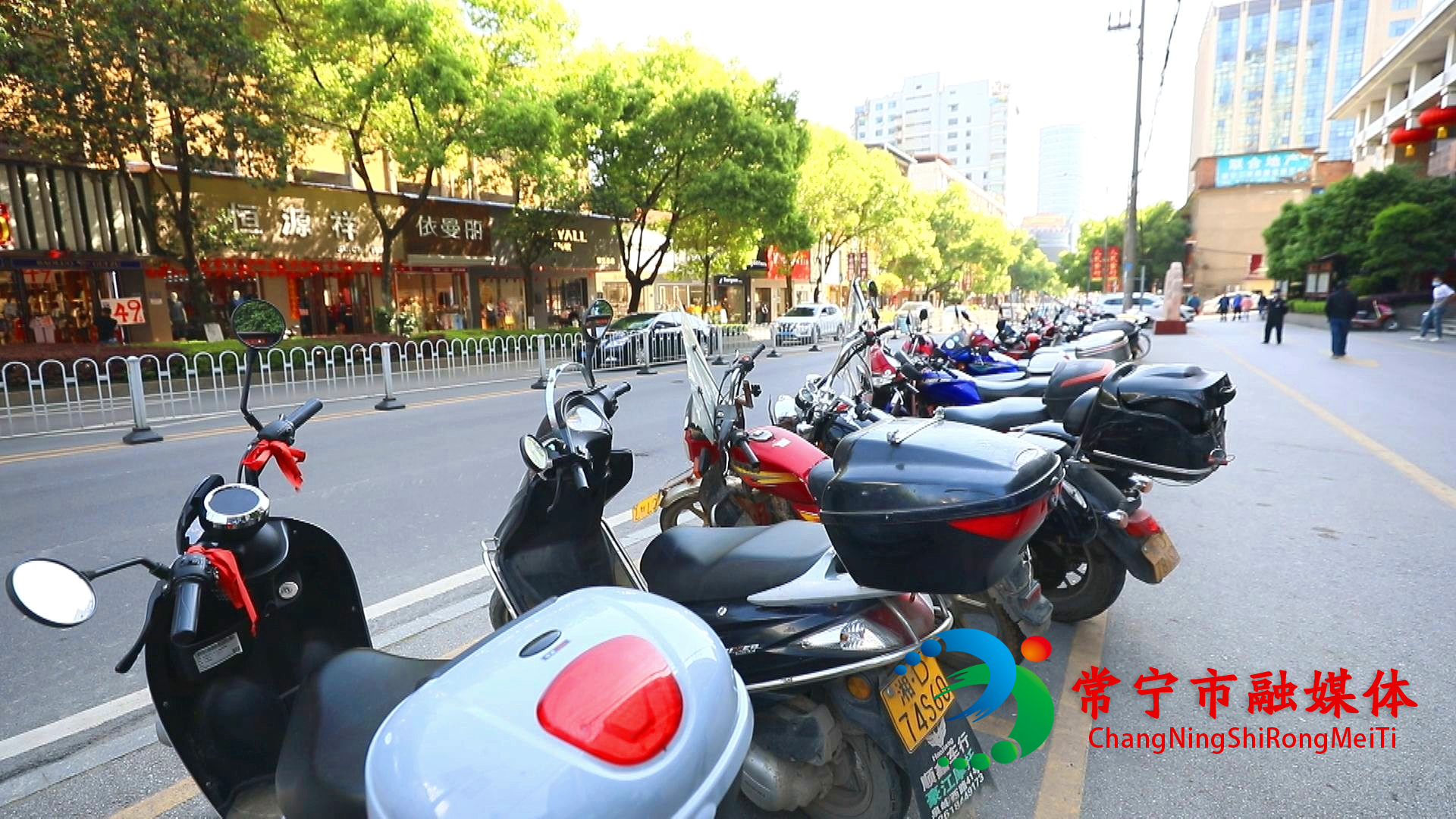 周末的群英路上,绿树成荫,车流不息。人行道上,摩托车电动车齐刷刷停框入位,给了市民别样的感受。