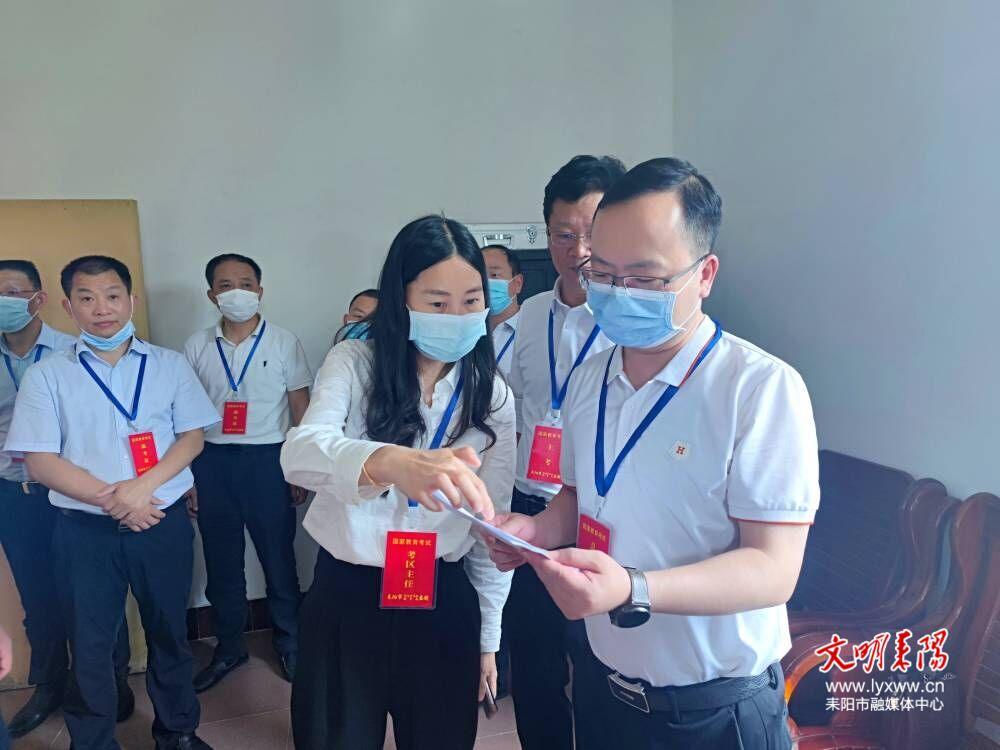 王星皓一行先后来到教育局高考总保密室、实验中学、中职学校,实地察看了考场监控室、广播室、保密室等,详细了解考务安排、人员配备、防控部署、应急处置、设备运行、保密管理等工作,并看望慰问坚守岗位的考务工作者,对考点工作和考场秩序给予充分肯定,向大家的辛勤付出表示诚挚感谢。