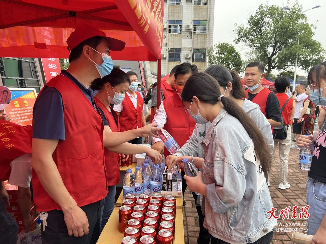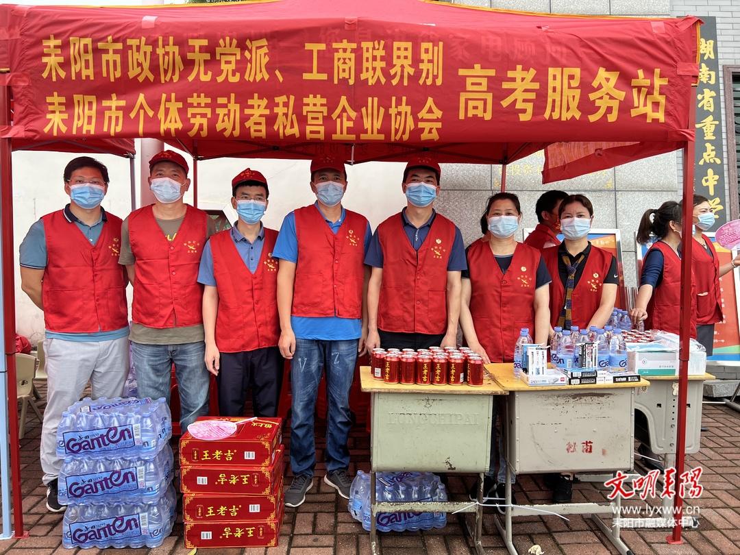 6月7日至9日,市政协无党派、工商联界别联合耒阳市个协及中国黄金珠宝城在耒阳一中考点开展爱心助考活动,向考生及家长免费提供矿泉水、饮料、笔、口罩等物资。市政协副主席陆小勇参加。