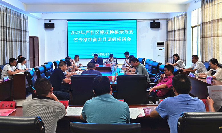 9月7日,湖南省棉花调研组专家来衡南调研指导严控区棉花种植工作,省农业农村厅种植管理处二级调研员丁伟平参加。