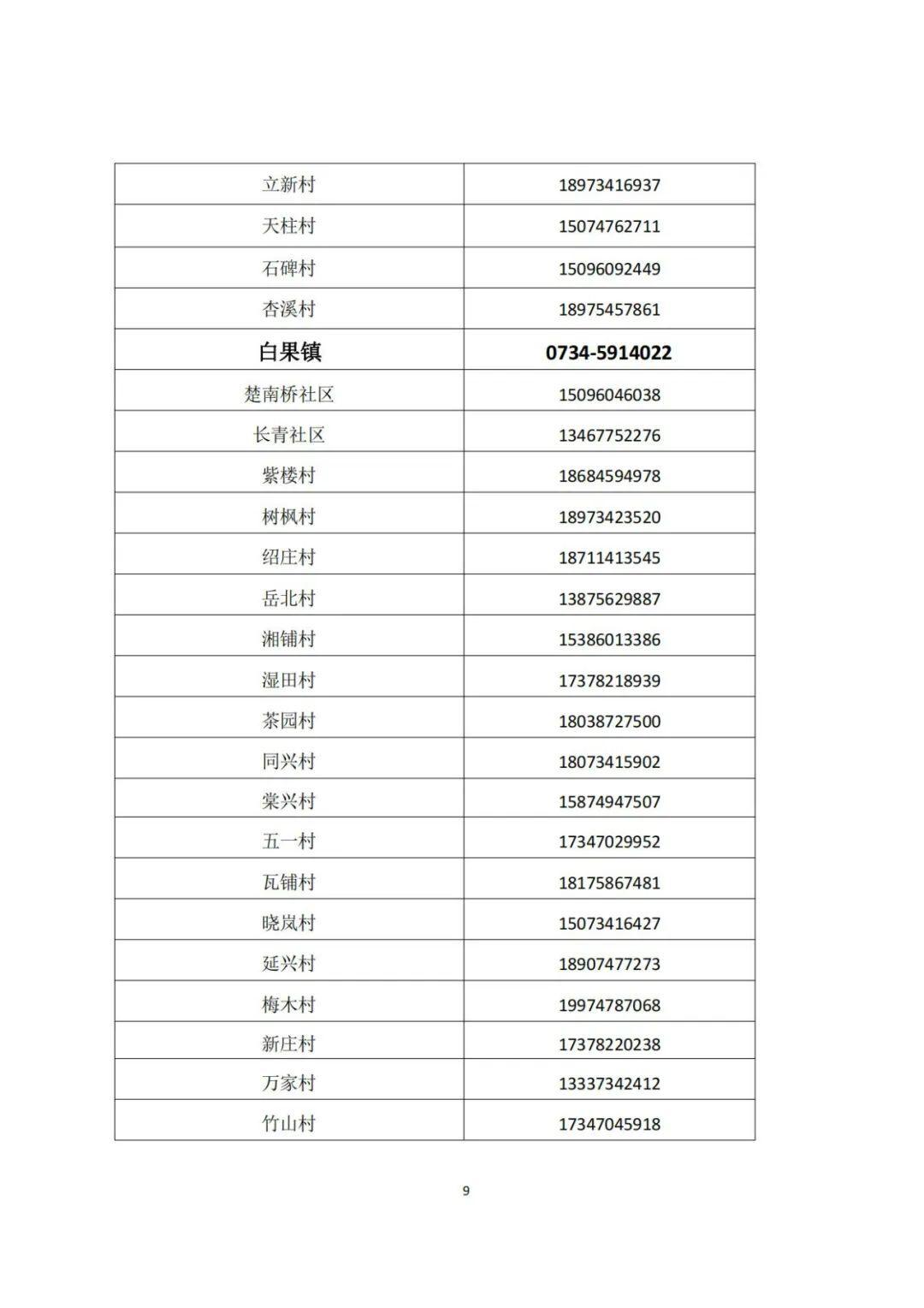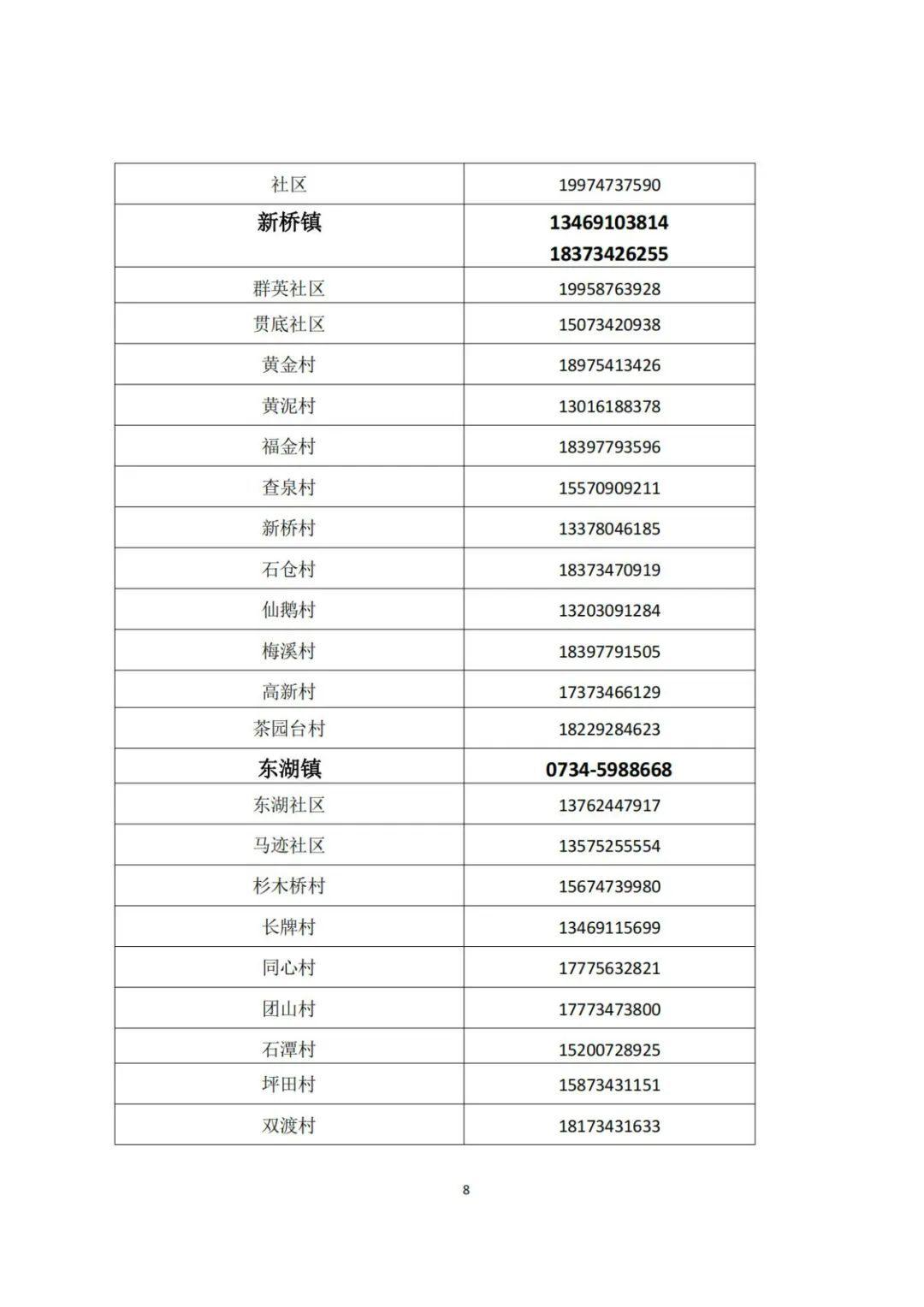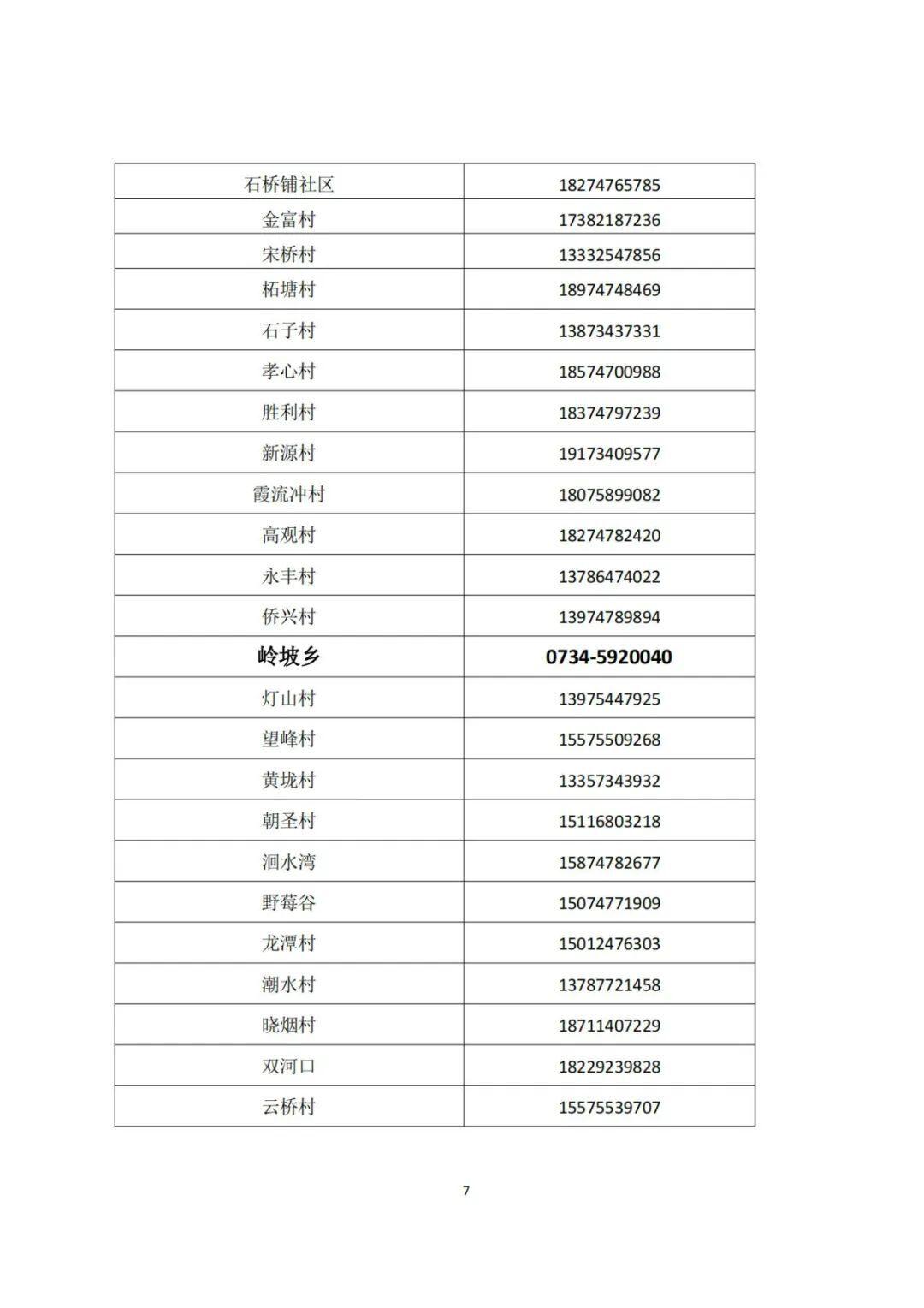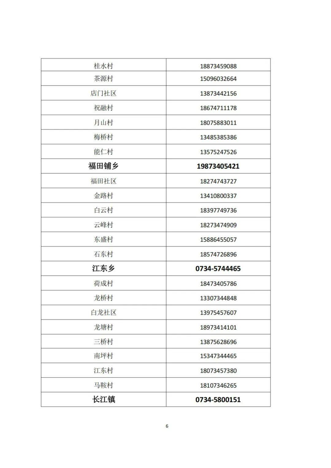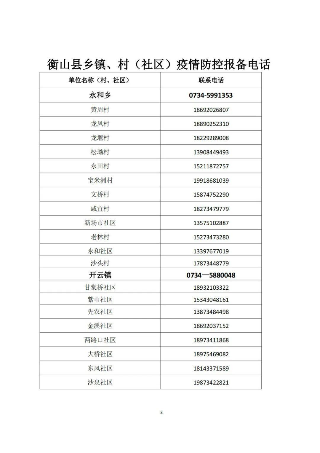 附:衡山县乡镇、村(社区)疫情防控报备电话
