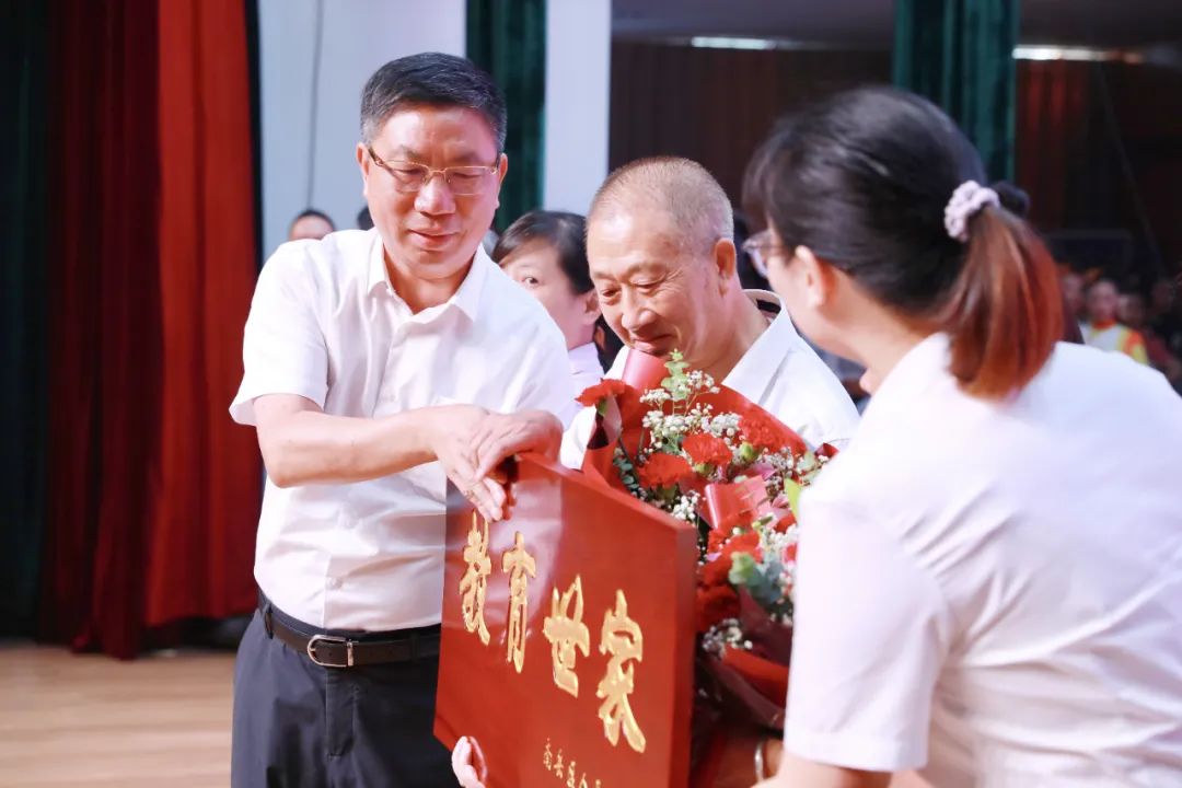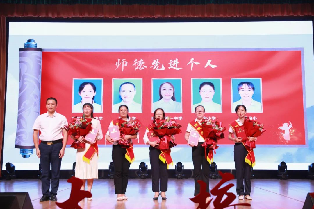 表彰现场气氛热烈,激情满满。见证南岳教育从小学免费、初中免费到高中免费,再到今年的政府购买学位、名山办名校的区一中副校长贺展,为南岳教育发展所取得的成绩和变化感到由衷的高兴和自豪,并表示将时刻铭记教书育人初心使命,带着责任、带着感情、带着温度,用心用情深耕南岳教育这片热土。