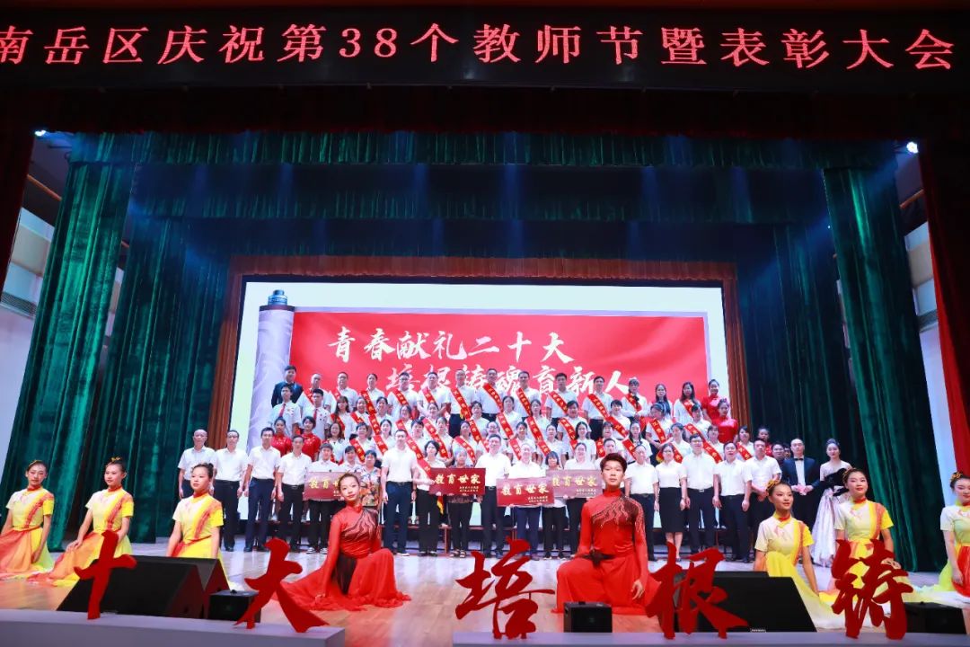 值第38个教师节来临之际,南岳区公开表彰全区47名优秀教师和优秀教育工作者,并对“教育世家”家庭颁发牌匾。南岳区委书记刘浪向辛勤工作在教育战线上的广大教职员工致以节日的问候和美好的祝愿,区委副书记、区长蒋炳炎主持表彰大会。