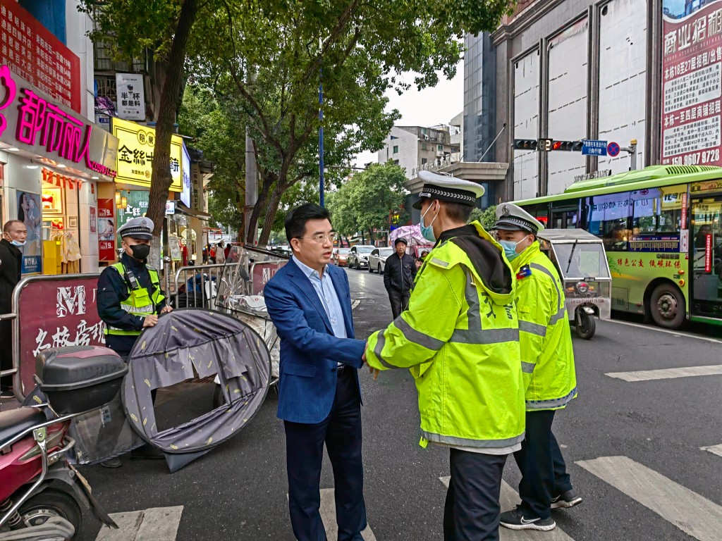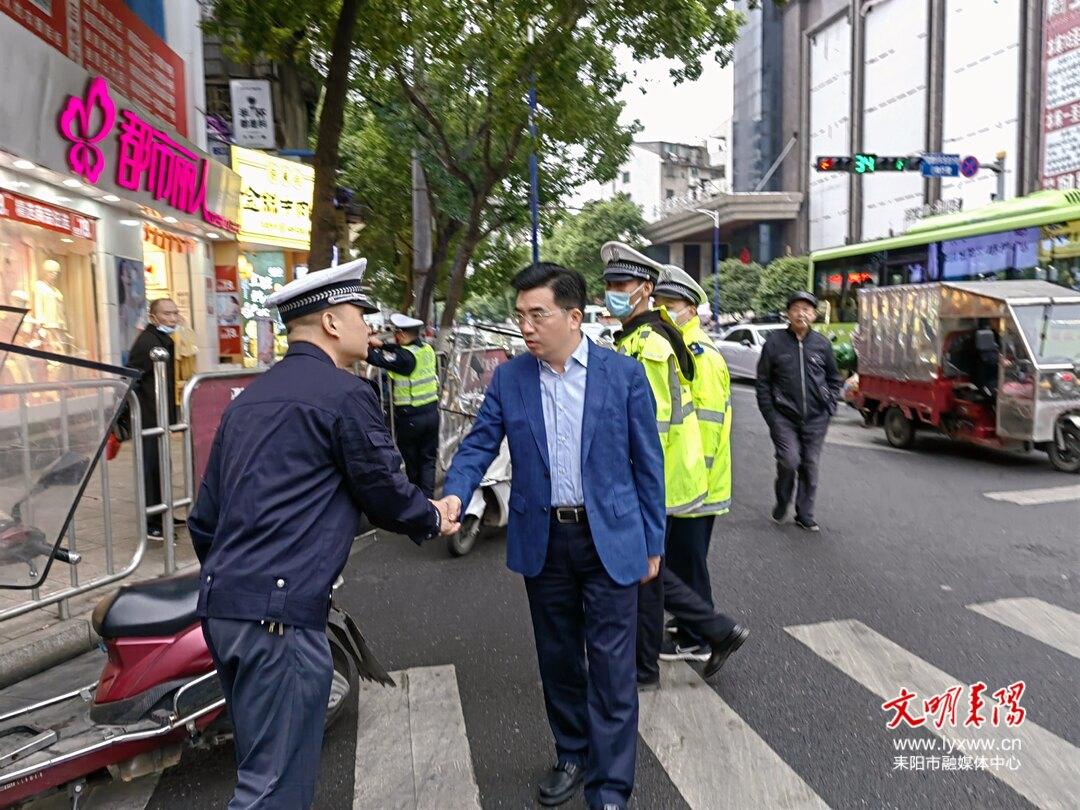 10月9日下午,衡阳市委副书记、耒阳市委书记赖馨正到五一路与群英路交叉路口,暗访“戴帽工程”专项行动落实情况,慰问一线交警,与被查纠未佩戴安全头盔的骑乘人员交流,劝导市民文明、安全骑乘摩托车、电动车。他强调,要始终坚持人民至上、生命至上,坚持刚性与柔性相结合、引导与管理相结合、常态整治与专项行动相结合,注重劝导方式方法,不断巩固“戴帽工程”专项行动成果,让市民骑乘摩托车、电动车自觉佩戴头盔形成习惯!