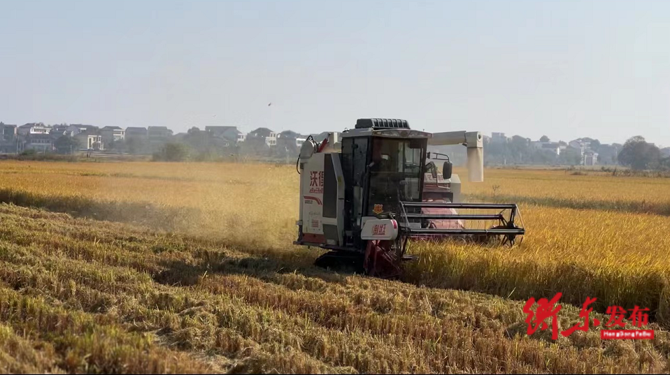 深秋的霞流镇一片丰收喜人的场景,在该镇的双季稻万亩示范片,从天空俯瞰,田间地头机器轰鸣,收割机欢快地驰骋,大片大片的麦秸秆被粉碎后抛洒在田里化作肥料。县农村经营服务中心工作人员介绍,秸秆粉碎还田不仅可以减少化肥使用提高土壤有机质,在节约农户耕作成本和劳动力的同时,还能提高农作物品质,据不完全统计,使用秸秆粉碎还田的耕地普遍产量增幅达到百分之五。目前,该项目已在全县铺开。