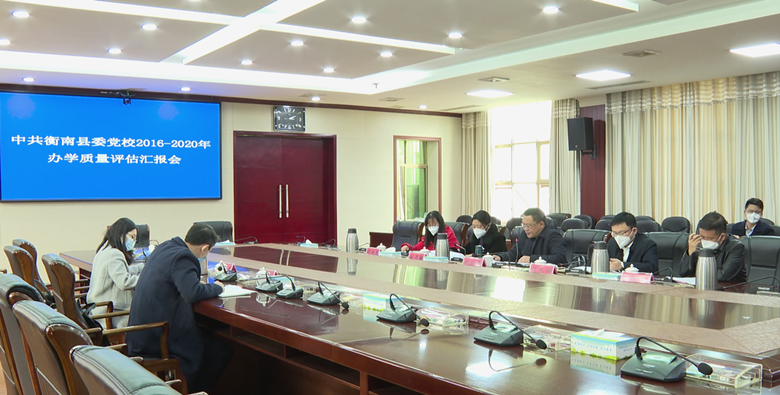 在评估汇报会上,县委副书记、县委党校校长胡琼峰汇报办学质量报告。他说,近年来,衡南县委党校深入学习贯彻习近平总书记关于党校办学治校系列重要指示精神和中国共产党党校工作条例,坚决树立党校姓党的根本原则,坚持政治建校、质量立校、科研兴校、理论创新、从严治校等方面务实作为,在基础设施升级、培训模式创新、教学模式探索等方面创造了特色,为衡南经济社会发展和干部队伍建设贡献了党校力量,县委党校将以此次评估为契机,戒骄戒躁,勇毅前行,在新时代新征程不断书写党校事业高质量发展的新篇章。
