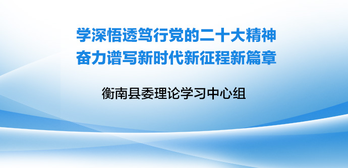 三、坚持干在实处,奋力推进党的二十大精神见行见效。要始终坚持以党的二十大精神为指引,将学习成果转化为奋进新征程、建功新时代的实际行动,努力做到以衡南一域之光为衡阳全局添彩。一要在学深悟透中筑牢忠诚根基。要始终坚持把旗帜鲜明讲政治作为第一位和最根本的要求,坚持用党的创新理论武装头脑,深刻领悟“两个确立”的决定性意义,进一步增强坚决做到“两个维护”的政治自觉、思想自觉、行动自觉。要善于从政治上谋划、部署、推动各项工作,主动融入全市、全省乃至全国发展大局,把握形势、抢抓机遇、加快发展。二要在改革发展中彰显担当作为。要坚持联系实际、务求实效,切实把党的二十大的部署和要求落实到衡南经济社会发展各领域各方面。要坚持“四区一花园”发展目标,围绕“一主一特双总部”产业布局,引进培育一批龙头企业,推动产业高端化、绿色化、集群化发展,把衡南建设成为湖南省重要先进制造业、输变电产业集群的核心承载区。持续深化屋场恳谈会制度、校联体改革“三三五”工程、关爱留守儿童“三爱三护”行动、紧密型县域“医共体”建设等以人民为中心的集成改革,推动发展成果更多更公平惠及全县人民。以“时时放心不下”的责任感,做到事事尽心为上,统筹发展和安全、统筹疫情防控和经济社会发展,推动衡南经济高质量发展行稳致远。三要在自我革命中永葆清廉本色。要坚决落实优化干部作风“九树九戒”措施、优化营商环境“九严禁”,扎实推进“清廉衡南”建设,持续深化“四查四治一提振”干部作风建设提升年活动,大力弘扬真抓实干、埋头苦干的良好作风,推动衡南干部作风持续向好、营商环境持续优化,积极营造聚精会神搞建设、一心一意谋发展的良好干事创业氛围,为全面落实“三高四新”战略定位和使命任务、加快推进“三强一化”、全面建设现代化新衡阳作出新的更大贡献。