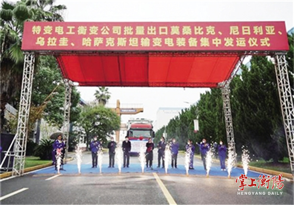 ▲特变电工衡变公司批量出口莫桑比克、尼日利亚、乌拉圭、哈萨克斯坦输变电装备发运仪式举行。