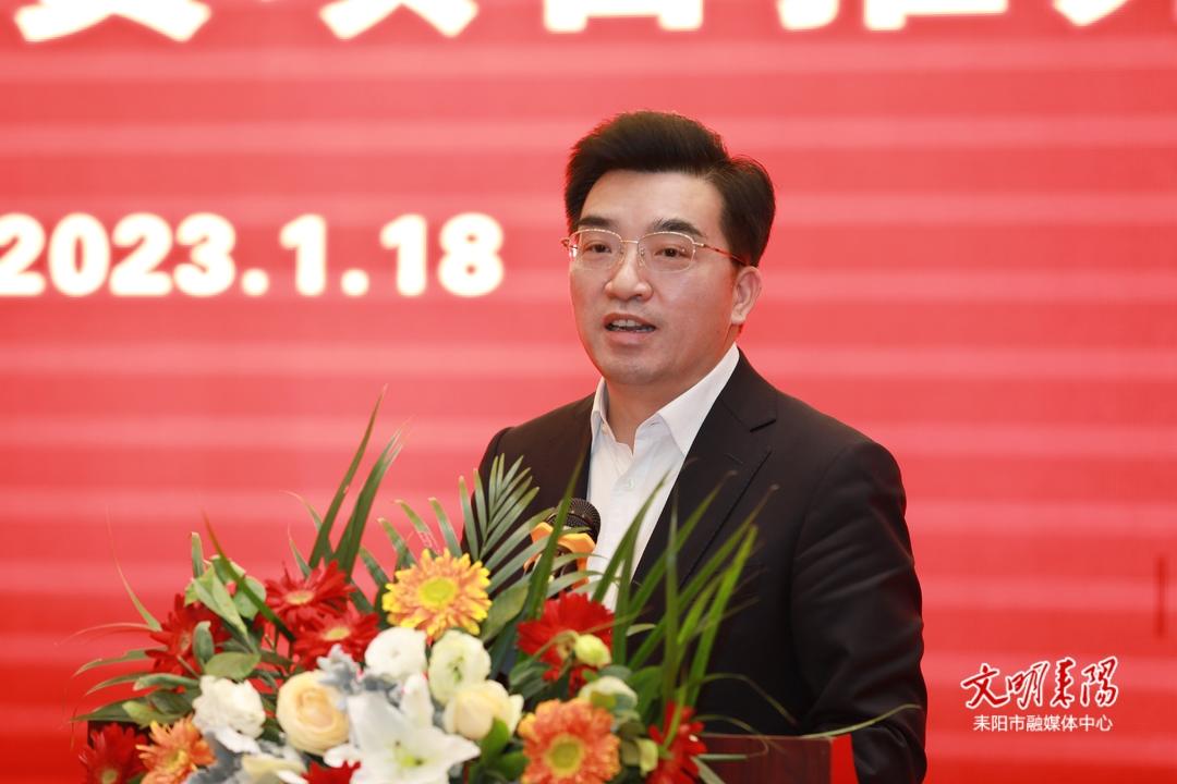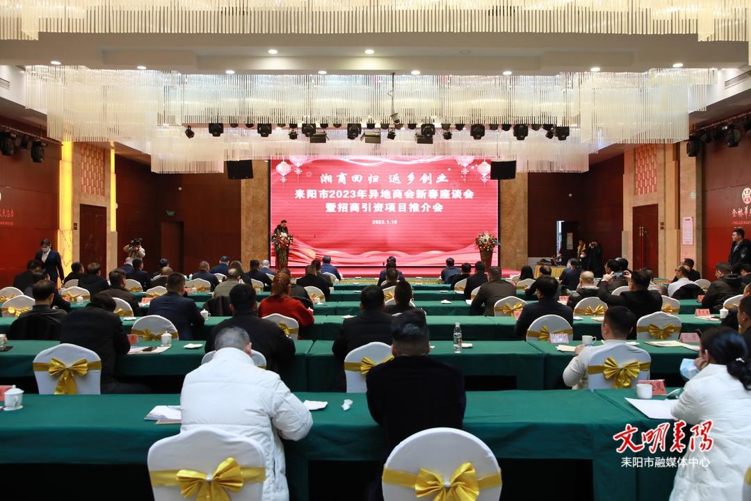 1月18日下午,耒阳市2023年异地商会新春座谈会暨招商引资推介会召开。衡阳市委副书记、耒阳市委书记赖馨正强调,要深入学习贯彻党的二十大精神和习近平总书记关于民营经济发展的重要论述,坚定不移落实“两个毫不动摇”,竭力打造一流营商环境,推动干部敢为、地方敢闯、企业敢干、群众敢首创,地企并肩携手干出一番新事业、拼出一番新天地。