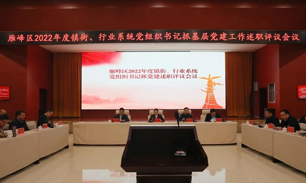 3月1日,雁峰区2022年度镇街、行业系统党组织书记抓基层党建工作述职评议会议召开。区委书记王燕主持会议并讲话,强调要不断提升全区基层党建工作水平,为奋力争当加快推进衡阳中心化进程的“领头雁”提供坚强的组织保证。会议邀请市委党员教育中心主任康霄羽到会指导。区委副书记、区长谢韬,区委副书记、统战部长彭顺利参加。