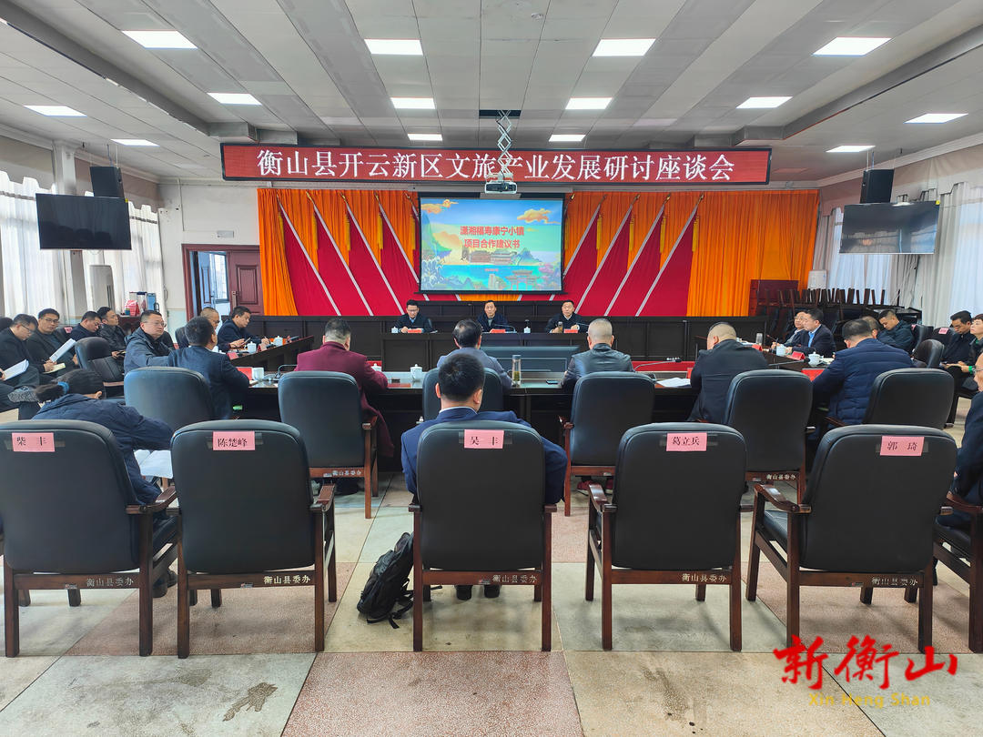 3月5日,衡山县召开开云新区文旅产业发展研讨座谈会,围绕如何打造好“中国·衡山福寿康宁小镇”、大力发展以开云新区为龙头的衡山文旅产业进行了广泛交流。县委书记戴新贤主持会议并讲话,县委副书记、县长段晓赛出席会议。县领导旷志军、唐年初、黄润葵、张志斌、颜海峰、宋少峰参加会议。金荣集团、湖南中医药大学、湖南建公投集团、魏源康复医院股份有限公司、新华联集团等相关企业和单位负责人参加会议。
