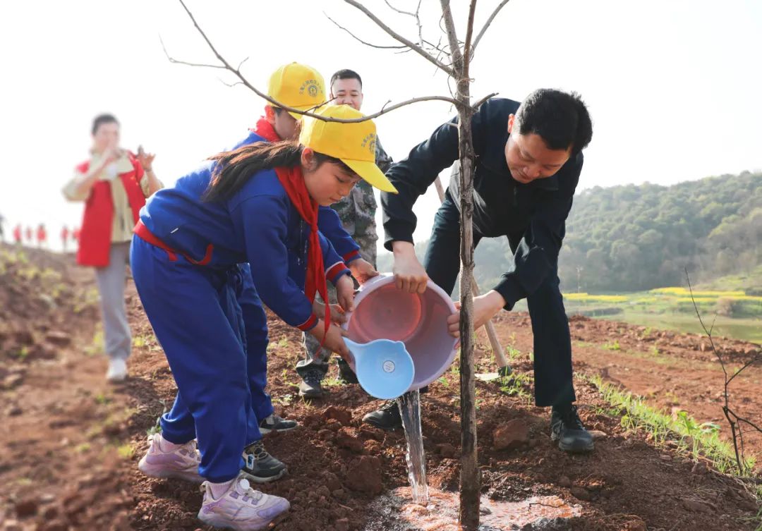 在植树期间,胡果雄一边同少先队员提水浇灌,一边询问孩子们学习生活和劳动锻炼情况。胡果雄说,植绿护绿、关爱自然是中华民族的传统美德。全县人民要积极行动起来,大力开展义务植树活动,都做生态文明建设的实践者、推动者;要科学规划林业产业,进一步推动土枇杷产业发展,以发展土枇杷产业带动乡村振兴,加快实现"四区一花园"目标。