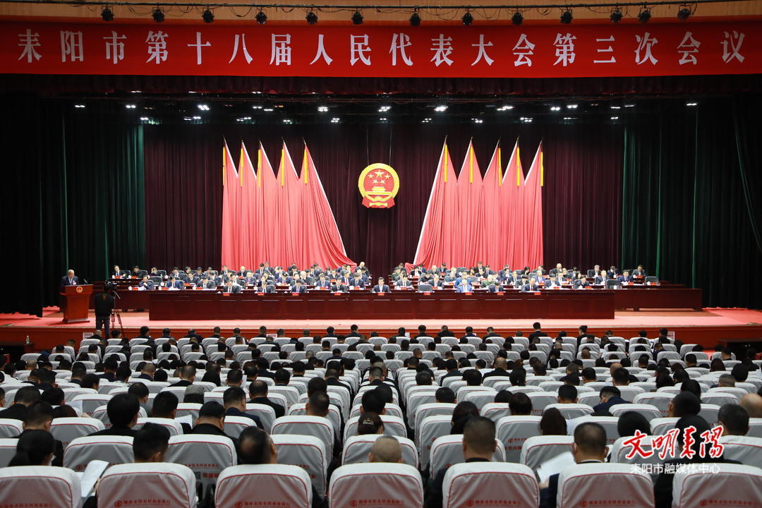 3月21日上午,耒阳市第十八届人民代表大会第三次会议在市文体会议中心隆重开幕。来自全市各条战线的300多名人大代表肩负重托、怀揣使命,满怀豪情、汇聚一堂,依法履行神圣职责,共商耒阳经济社会发展大计。