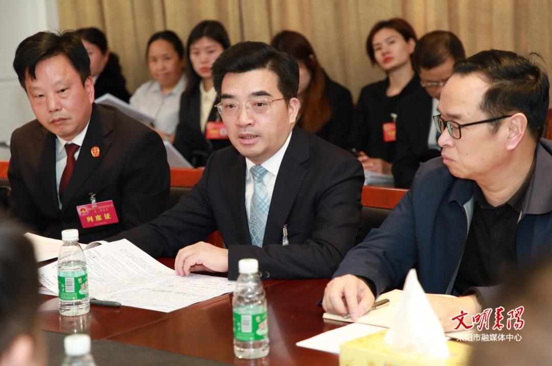 3月21日下午,衡阳市委副书记、耒阳市委书记赖馨正到市十八届人大三次会议公平片代表团,与代表们一同审议政府工作报告。
