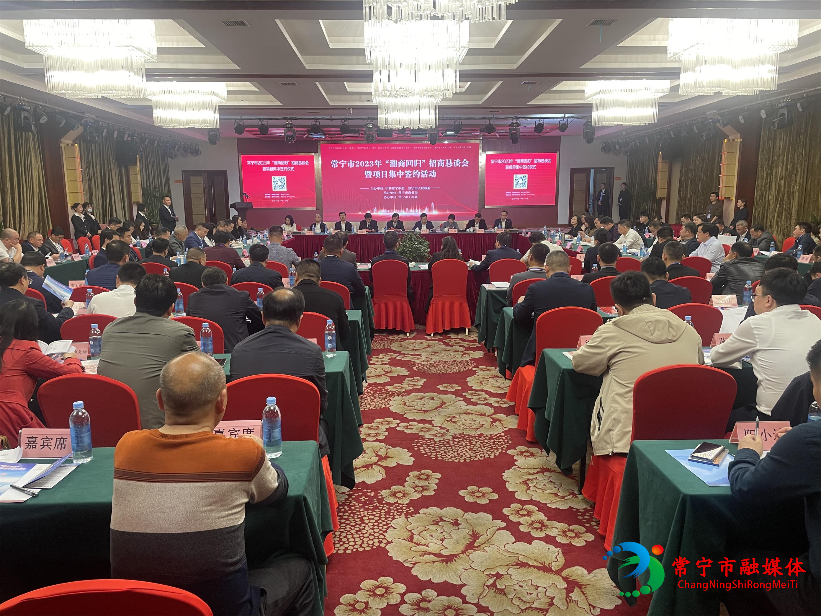 4月4日下午,常宁举行2023年“湘商回归”招商恳谈会暨项目集中签约仪式。现场集中签约13个项目,总投资额6.75亿元。市委书记吴乐胜出席并讲话,市委副书记、市长罗卫华致辞,市委副书记、统战部长邹雄杰主持,市人大常委会主任王一花,市政协主席段鸣出席。