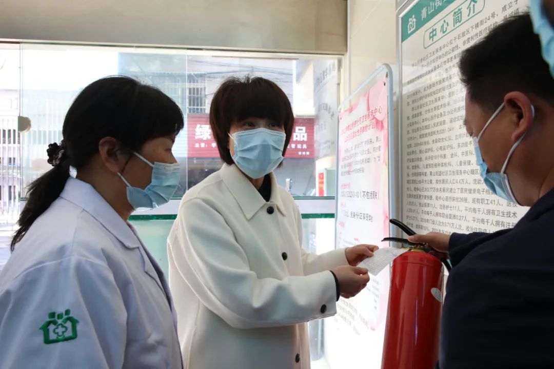 在青山街道卫生服务中心,谢海蓉实地察看了门诊大厅、全科诊室、住院病房等重点区域,现场检查了疏散通道畅通情况以及消防器材维护情况,详细了解值班值守等责任落实情况,并现场提问医护人员消防器材的使用方法以及发生火灾后的应急措施。她表示,要进一步加强医疗卫生机构标准化建设,持续优化医疗条件和就医环境,切实满足群众基层就医需求,不断提升基层群众获得感和满意度;在提升硬件设施的同时,要积极发挥医联体医共体牵头医院作用,借助辖区内优质医疗资源,加强对基层医疗卫生机构的技术支持、培训和指导。
