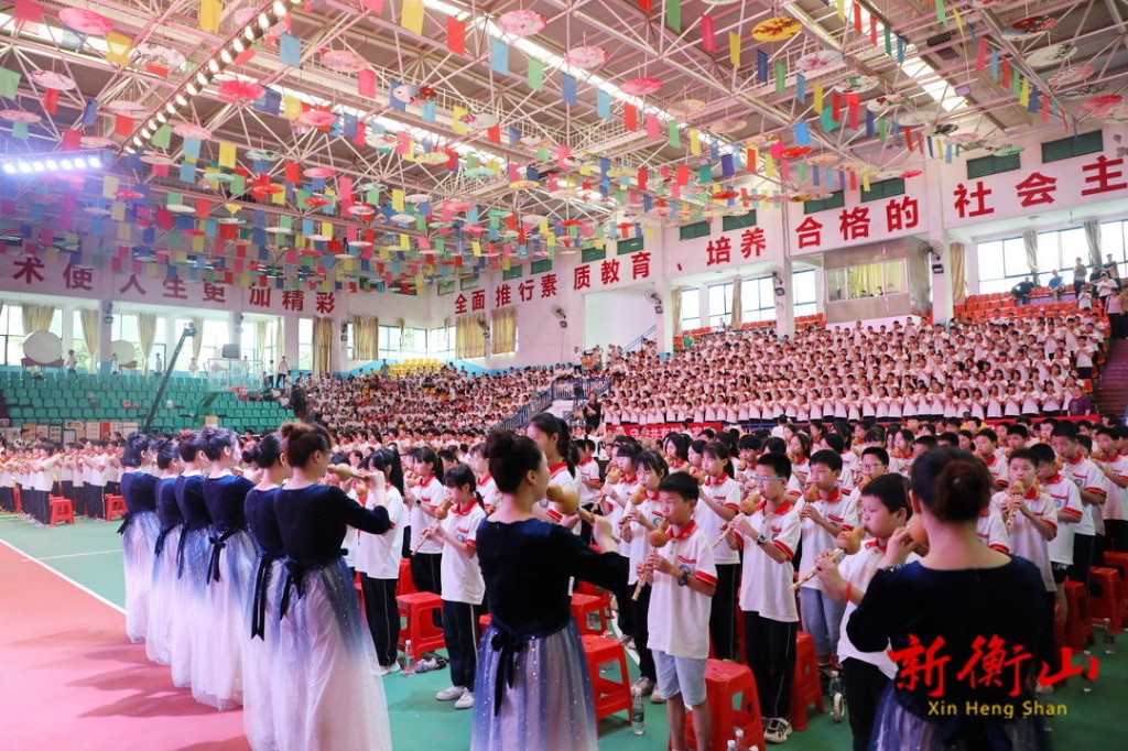 当天集中展演现场,精彩纷呈的龙狮表演《衡山拜龙》、灵巧细腻的民族器乐演奏《衡山民歌民谣》、悦耳动听的传统民歌《岳北山歌》、衡山花鼓灯《一塘清水一塘莲》等12个节目轮番上演,赢得了广大师生的广泛赞誉。最后,在场的近千名学生一起演奏葫芦丝《我和你》,悠扬的乐声回旋于整个活动现场,让学生亲身感受到非物质文化遗产的无穷魅力和特有的文化价值,让传统文化薪火相传。