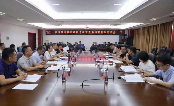 7月11日,湖南省专项督查第四督查组来雁峰区开展实地督查。上午,省政府专项督查第四督查组见面交谈,湖南省发展改革委优化处二级调研员刘凯出席并讲话,区委书记王燕主持会议并作表态发言。