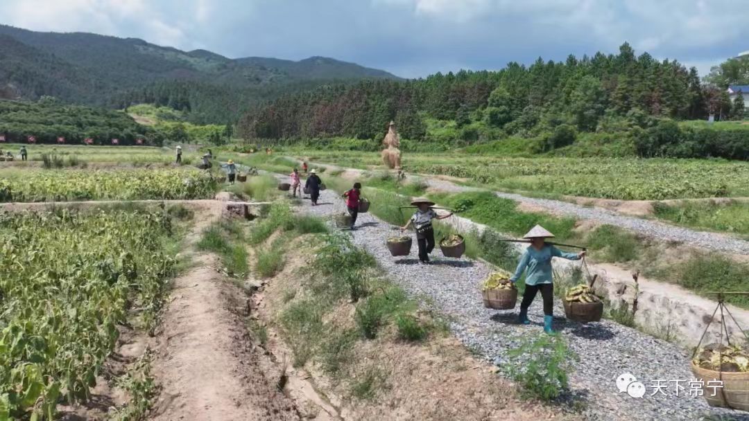走进洋泉镇巷坪村的油葵基地,映入眼帘的是成片沉甸甸的葵花盘,几十名村民头戴斗笠,顶烈日穿梭在半人高的油葵丛中,割花盘、装筐、挑运,有序地采收油葵,时不时还传出一阵阵欢声笑语,场面十分热闹。"种植葵花籽改变我们村的面貌,开花的时候好看,又有收入,家门口做事,家里也照顾到了。"正在采收油葵的陈运姣说道。
