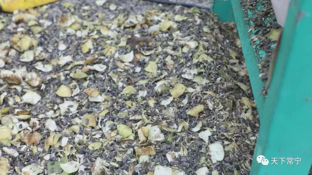 今年采取育秧移栽的方式,相比较以往,品质提升10%左右,出籽率亩产在150斤左右,出油率大概56%。在巷坪村的晾晒场,一车又一车油葵花盘堆成了一座小山,村民分工合作,将采收的油葵花盘脱粒晾晒、过滤杂质,满地黑黝黝、颗粒饱满的油葵果实成为当下夏收中一道别致的风景线。