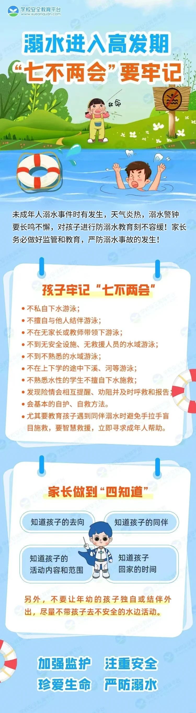 游泳戏水季节到,防溺水“七不两会”别忘掉。