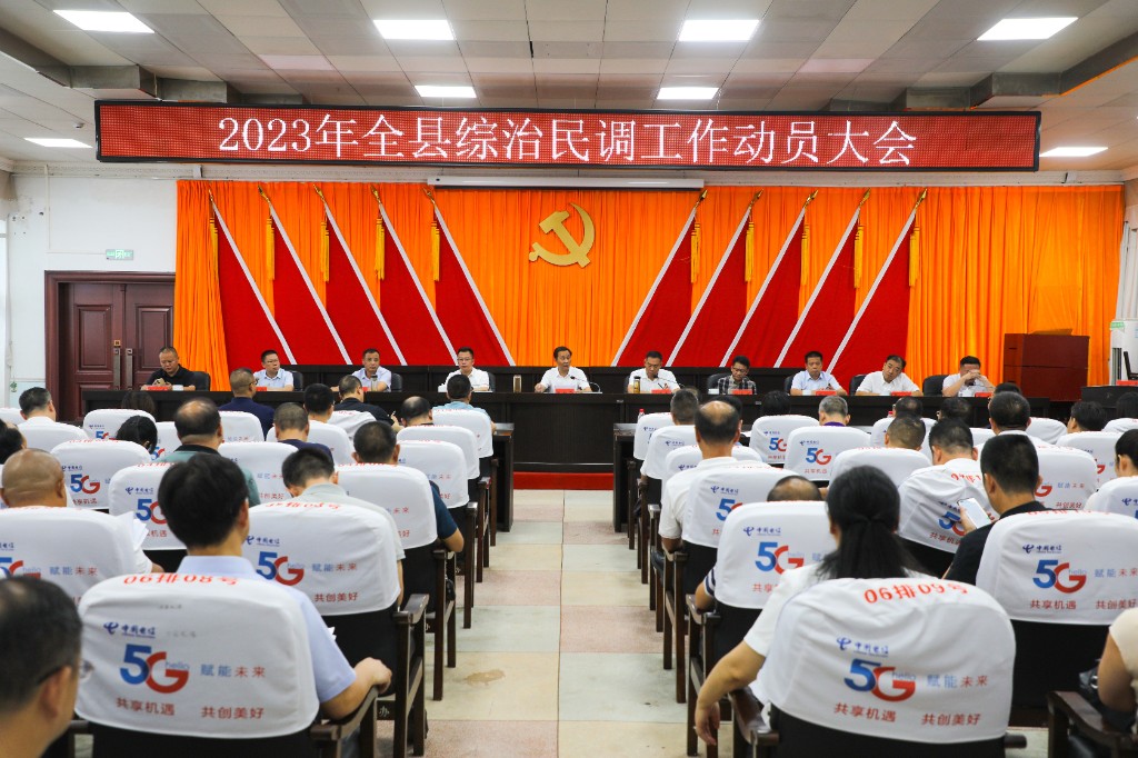 9月11日,2023年全县综治民调工作动员大会召开。县委书记戴新贤出席会议并讲话,他强调,要高度重视,细化举措、压实责任、齐抓共管,着力提升公众安全感、满意度,以实干实绩推动全县综治民调工作迈上新台阶。县委副书记、县长段晓赛主持会议。
