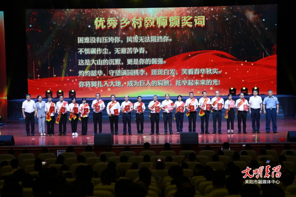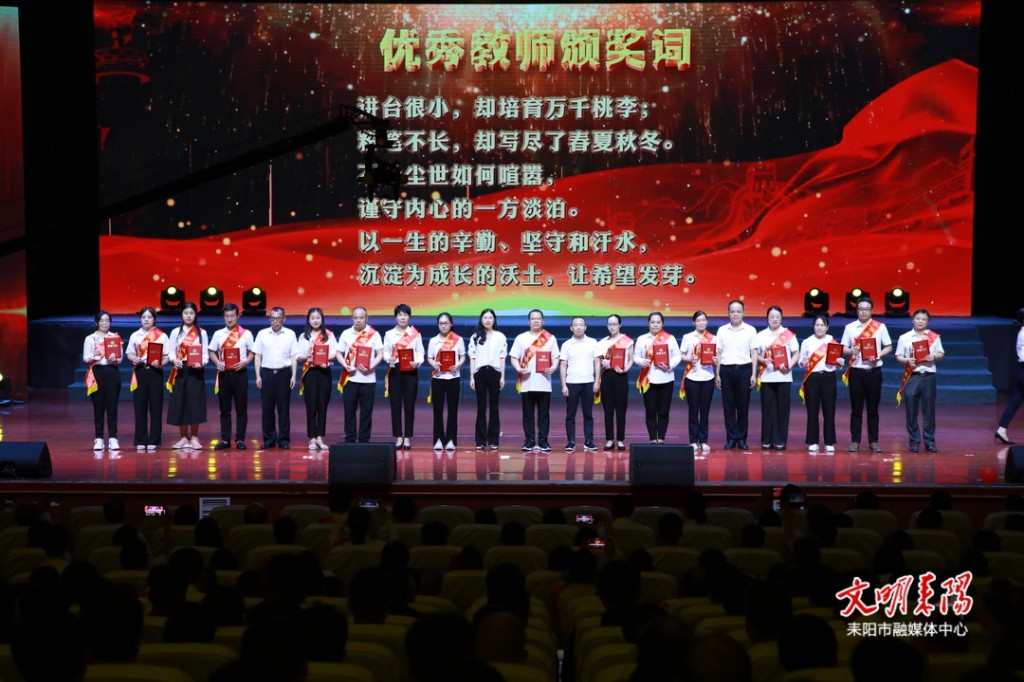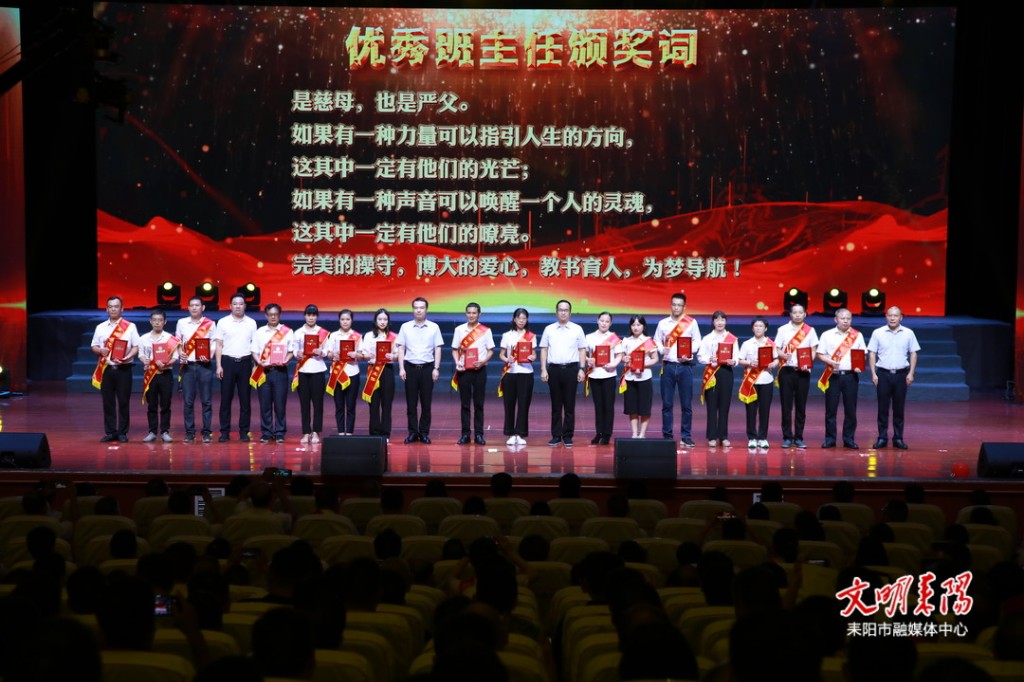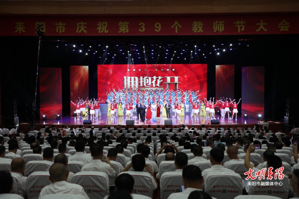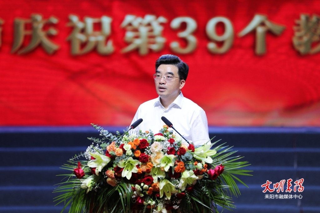 9月11日下午,耒阳市举行庆祝第39个教师节大会,表彰全市教育战线先进典型。衡阳市委副书记、耒阳市委书记赖馨正代表耒阳市“四套班子”和143万耒阳人民,向广大教师、教育工作者致以节日的问候,向受到表彰的先进典型表示热烈的祝贺,向长期以来关心支持耒阳教育事业的社会各界人士表示衷心的感谢。市委副书记、市长尹立鑫宣读表彰通报。