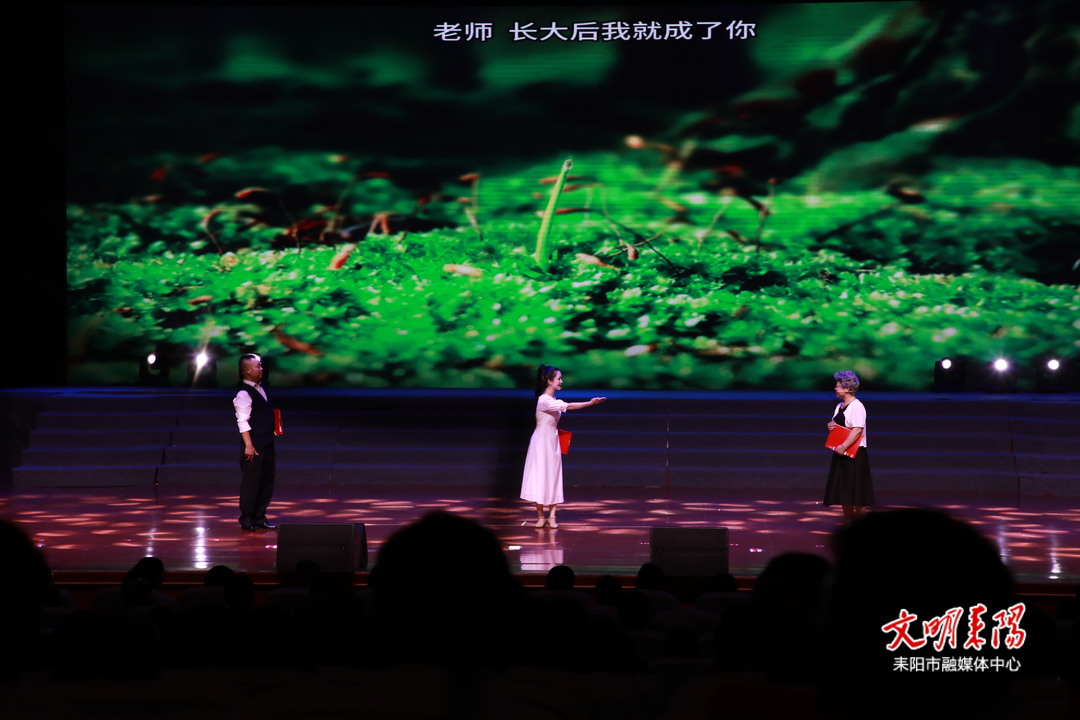 会上,与会人员观看了耒阳教育宣传片、文艺表演。会前,赖馨正一行参观了首届教师艺术节作品展。