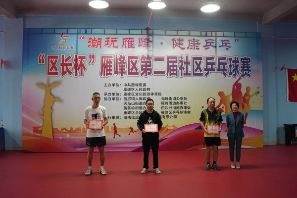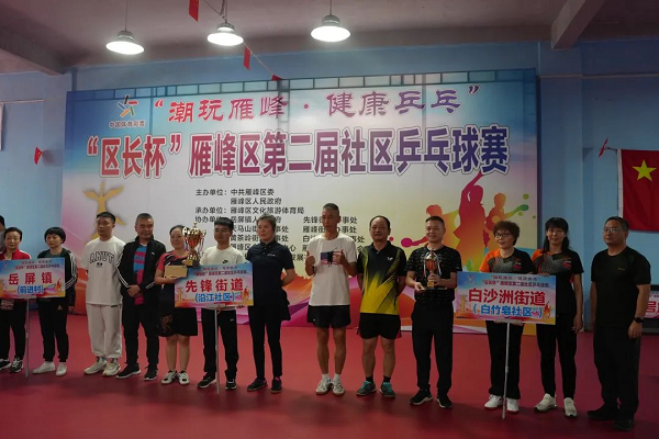 10月15日,雁峰区“区长杯”第二届社区乒乓球赛落下帷幕,经过三天的激烈角逐,先锋街道沿江社区取得本次比赛混合团体赛第一名,岳屏镇前进村取得混合团体赛第二名,白沙洲街道白竹皂社区取得混合团体赛第三名,前进村贺鑫、白竹皂社区阮兵、白竹皂社区廖跃辉分别取得男子单打比赛冠亚季军,沿江社区王筱蓉、沿江社区李红梅、欧水岭社区杨友香分别取得女子单打比赛冠亚季军。