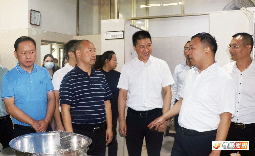 在衡云初级中学,雷俊实地检查学校食堂环境卫生、从业人员健康管理情况,详细了解食品源头采购、原材料储存、食品加工流程、餐具清洗消毒、食品留样等情况,认真查看进货查验台账记录和学校"互联网+明厨亮灶"运行情况,对"日管控、周排查、月调度"食品安全制度落实情况进行全面、细致地督导检查。
