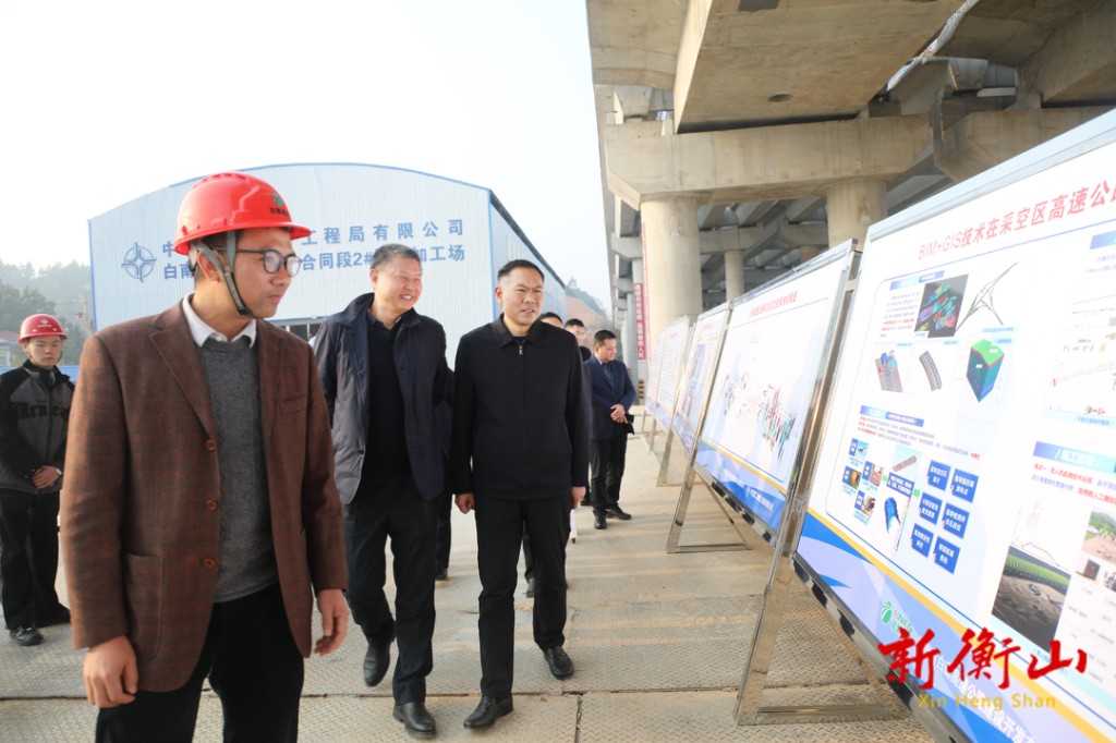 段晓赛一行首先来到白南高速湘江特大桥,察看项目建设进度,并沿着白南高速主线一路察看三标沥青路面摊铺、一标水稳摊铺、白果互通施工等情况;随后,段晓赛一行沿着G240公路白果段,调研项目建设有关情况。