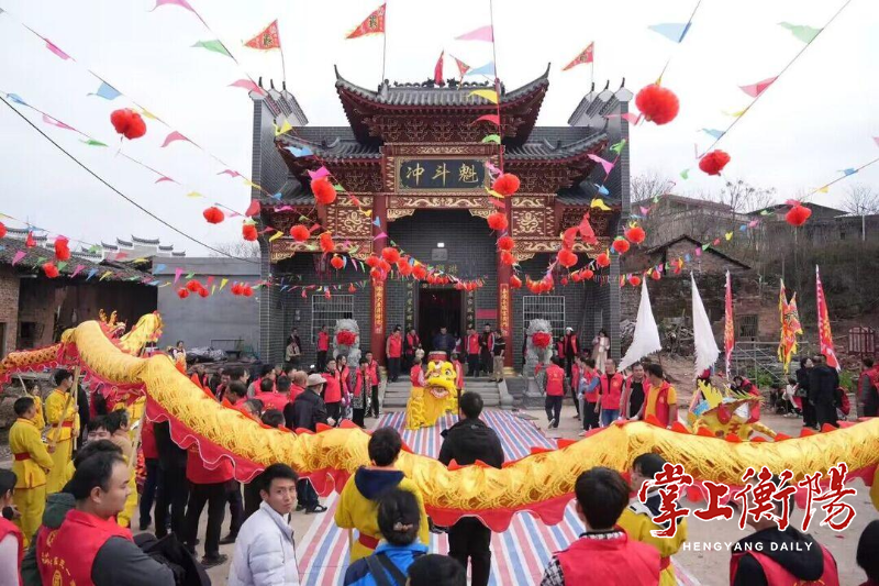 而距离敖山庙会40多公里的大和圩乡春江铺村,传承了400余年的衡阳市级非遗项目大和“滚地龙”表演“龙”重登场,深受当地群众喜爱,也是春节期间的重要民俗活动之一。