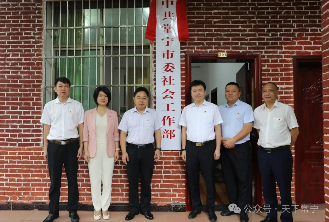6月27日,中共常宁市委社会工作部揭牌成立。市委书记、市长罗卫华,市委副书记、统战部长邹雄杰,市委常委、市委办主任金慧慧共同为市委社会工作部揭牌。