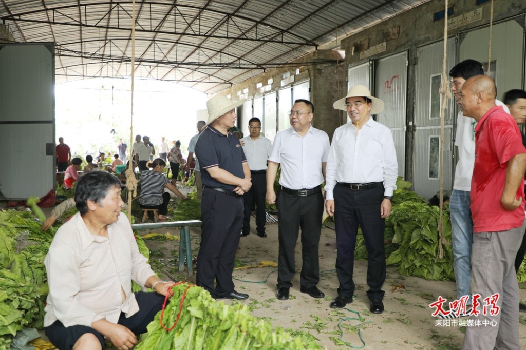 在丹田村烟叶烘烤工场,赖馨正与烟农交流互动,询问烤烟生产、种植、收购、收入等情况,要求加强技术服务指导和烤房安全管理,持续推进烟叶生产标准化、规范化,不断提升烟叶品质和产业效益,让烟叶成为烟农增收致富的“黄金叶”。