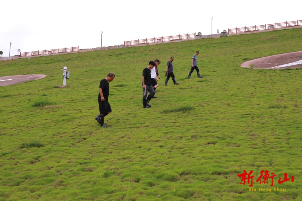 6月28日,九观桥水库管理所工作人员穿戴好雨靴等装备,分组对水库大坝进行巡查,为汛期防汛工作做好充足准备。大家排成一排,沿着坝坡进行拉网式检查,不落一处地仔细查看坝体是否存在渗水、管涌、排水系统堵塞等隐患。