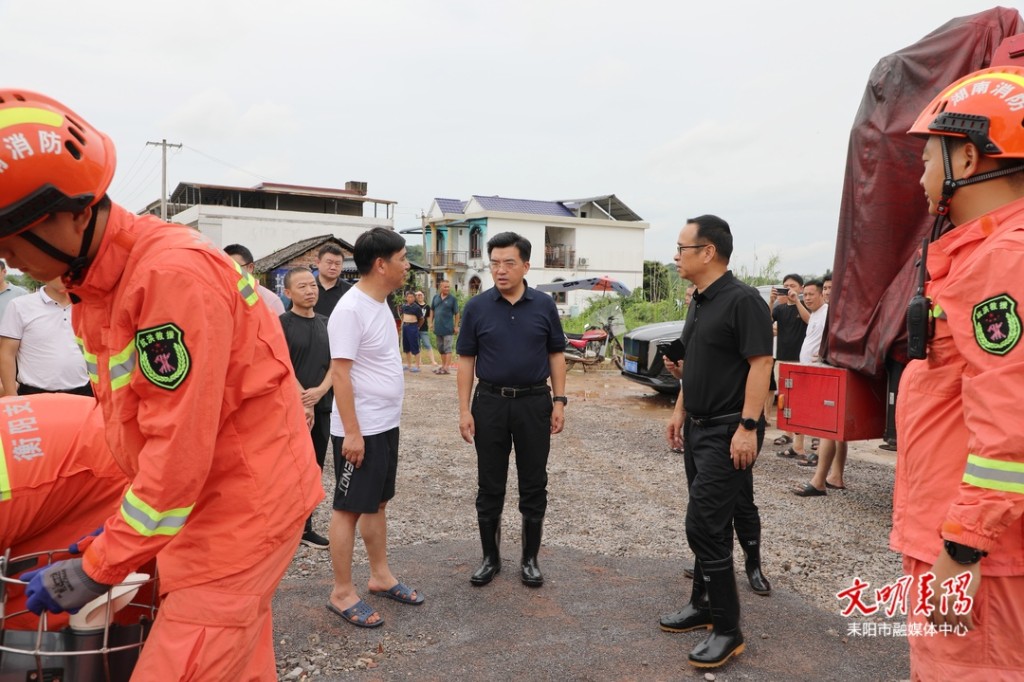 7月28日,衡阳市委副书记、耒阳市委书记赖馨正到耒阳城区和部分乡镇街道督导防汛工作,看望慰问奋战在抗洪抢险一线的党员、干部和转移安置群众。他强调,要深入学习贯彻习近平总书记关于防汛救灾工作的重要指示精神,坚持人民至上、生命至上,认真落实上级工作要求,发扬不怕吃苦、连续作战的优良作风,把风险挑战估计得更充分一些,把应对措施准备得更周全一些,把各项工作做得更细致一些,全力做好迎峰度汛工作,确保人民群众生命财产安全。