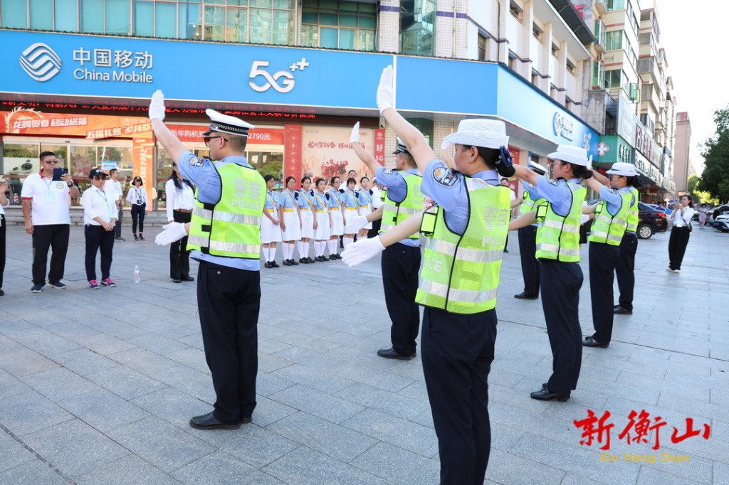 随后,香港交通安全队一行来到衡山大道,现场观摩了交警指挥手势队列操表演。