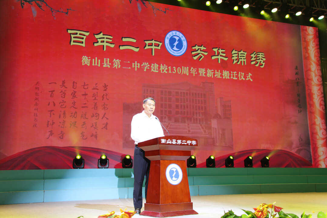 韶光流转,盛事如约;衡山二中,百卅芳华。10月1日,衡山县第二中学隆重举行建校130周年校庆暨新址搬迁仪式。衡山县委书记戴新贤出席并致辞,衡山县委副书记、县长段晓赛主持仪式。