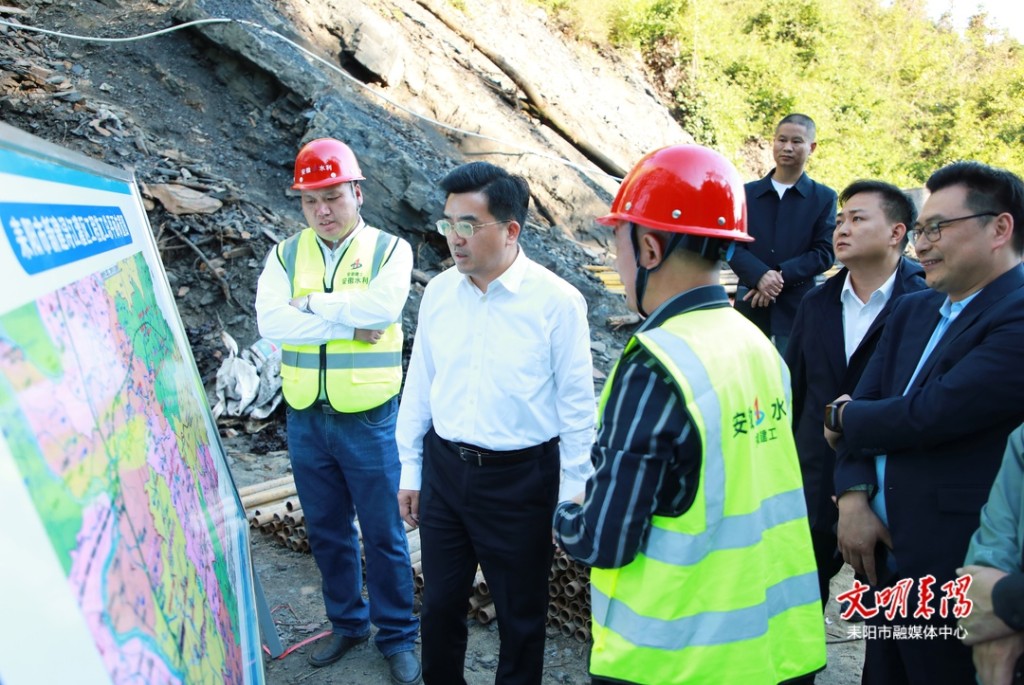 10月24日下午,衡阳市委副书记、耒阳市委书记赖馨正到大市镇和导子镇新建浔江灌区项目建设现场调研增发国债水利项目建设情况,看望项目一线工作人员。他强调,要深入学习贯彻习近平生态文明思想和习近平总书记关于粮食安全的重要论述,认真落实上级工作要求,扎实开展“两个年行动”,扛牢压实责任,加强统筹调度,排满工期,增派人手,挂图作战,确保项目如期建成、早日投用。