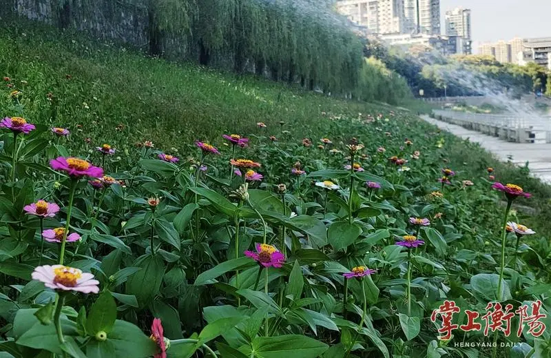 秋风轻拂百花开,江岸成了调色板。经过一个多月的精心养护,一条蜿蜒舒展的“花腰带”绽放在湘江西岸外滩石鼓书院至太梓码头段12000平方米的河滩上,百日草、硫华菊、波斯菊等野花交织成巨型彩毯,引得市民游客纷至沓来,共赴一场秋日视觉盛宴。