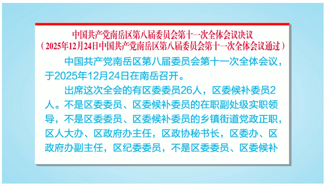 (2025年12月24日中国共产党南岳区第八届委员会第十一次全体会议通过)