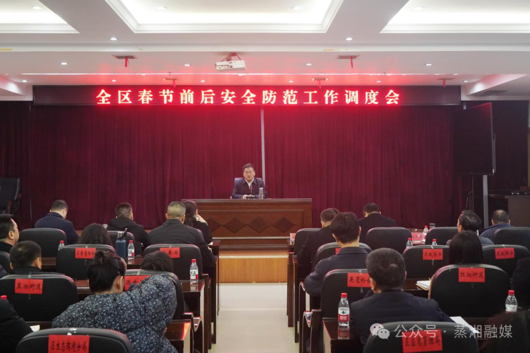 为进一步压紧压实安全责任链条,确保各项防范措施落实落细,2月3日,区委副书记、区长李健主持召开全区春节前后安全防范工作调度会议,就相关工作进行专题调度和系统安排。区领导贺畅、阳宏伟、陈一江、刘元莲、陈宏羽、廖东笙出席会议。