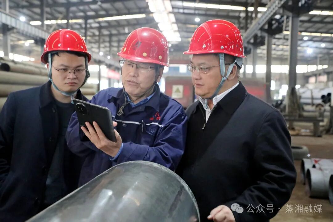 在衡阳鸿成高压气瓶管制造有限公司、衡阳鸿轩管材有限公司、衡阳鸿源管业有限公司的生产车间,生产线上火花四溅、焊光闪烁,切割、焊接、组装等工序有条不紊地进行,各类钢结构构件整齐码放,车间全线满负荷生产。每到一处,李健都走进生产车间,与企业负责人深入交流,详细了解产能恢复、市场订单、新一年发展规划以及企业安全生产责任落实等情况。他表示,企业要时刻绷紧安全生产这根弦,落实落细各项安全防控措施,同时开足马力抓生产、提效能,以“满格电”的状态全力推动复工复产提质提效,为实现一季度“开门稳”“开门红”夯实根基。
