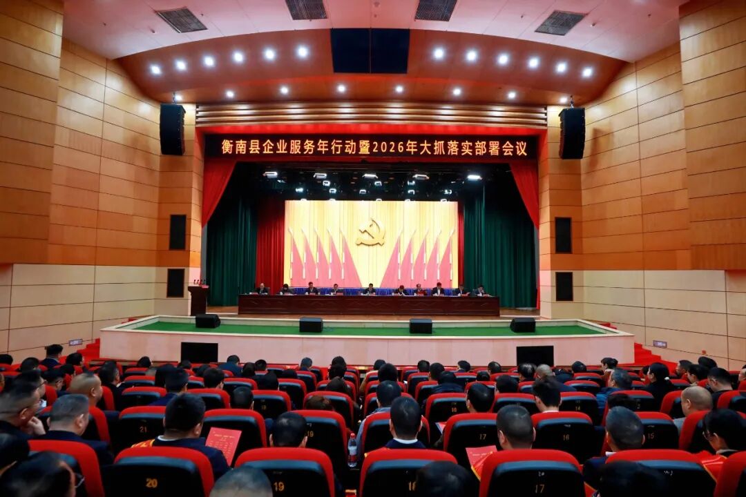 3月5日,衡南县企业服务年行动暨2026年大抓落实部署会议召开。县委书记许达出席并讲话,强调要深入学习贯彻习近平总书记关于民营经济发展和优化营商环境的重要论述精神,坚决落实省委、省政府推进企业服务年行动各项决策部署和市委市政府优化营商环境暨企业服务年行动部署要求,深刻认识企业服务年行动的重大意义、牢牢把握企业服务年行动的关键环节、不断汇聚企业服务年行动的强大合力,为坚定走好"工业强县、文教旺城"发展之路,实现"十五五"良好开局作出应有贡献。县委副书记、县长李仕兵主持,县委副书记、衡南高新区党工委书记雷俊宣读《关于对衡南县2025年"大抓落实"先进集体和先进个人进行表彰的通报》。县人大常委会主任黄日荣,县政协主席阳旭辉出席。