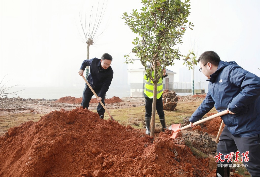 耒阳融媒3月12日讯(记者 袁成龙 曾志明)春风催新绿,植树正当时。3月11日上午,在第四十八个植树节来临之际,市委书记张润槐,市委副书记、代市长陈昌义等市领导来到沿江北路植树点,与干部群众一同参加义务植树活动。