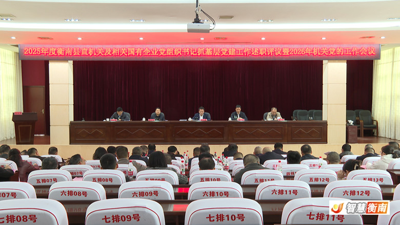 3月24日,衡南县召开2025年度县直机关及相关国有企业党组织书记抓基层党建工作述职评议暨2026年机关党的工作会议。会议通过"述职+点评+测评"的方式,对2025年度机关党建工作情况进行集中评议与全面总结,安排部署2026年全县机关党建工作。县委常委、县委办主任、县直机关工委书记彭小冬出席并讲话。