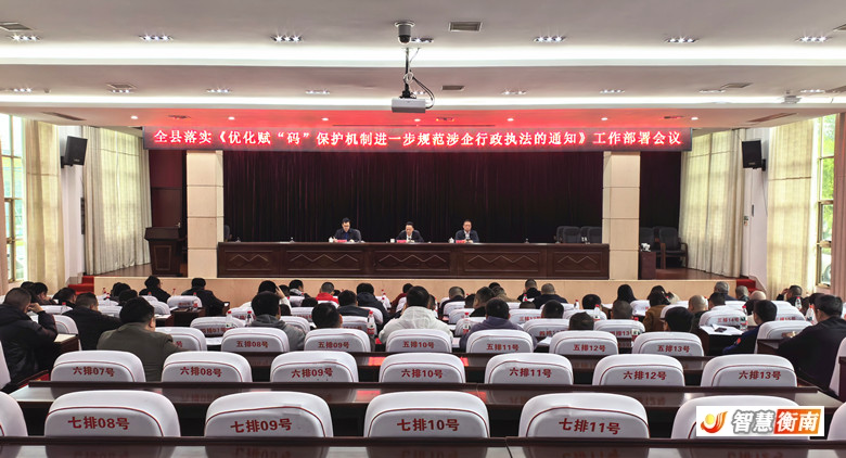 3月26日,衡南县召开《全面落实优化赋"码"保护机制进一步规范涉企行政执法工作》部署会议,学习贯彻中央、省、市关于规范涉企行政执法的系列文件和会议精神,专题部署优化赋"码"保护机制,并规范涉企执法行为,持续优化法治化营商环境工作。县政府副县长、县公安局局长蒋璞出席会议并讲话。