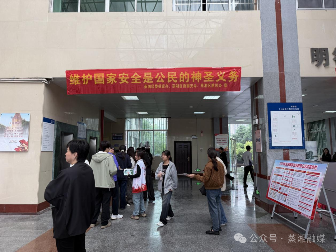 除校园主场活动外,4月15日当天,蒸湘区各镇、街道(办事处)及各村(社区)和区政务服务中心同步行动,充分利用电子显示屏、宣传展板、社区宣传栏等载体,循环播放国家安全宣传标语、张贴宣传海报、解读安全知识,广泛开展全民国家安全教育日宣传活动,实现辖区宣传全覆盖,让国家安全知识走进千家万户,引导广大群众自觉树立国家安全观。